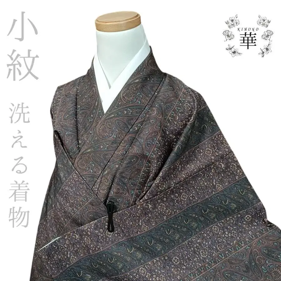 220 화 기모노 코몬 워셔블 기모노 페이즐리 꽃+덩굴 패턴 보라색