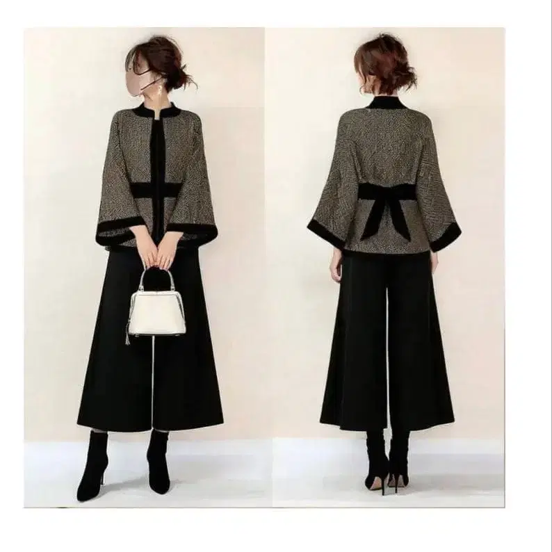 캐주얼 셋업 코디 블랙 8부 스커트