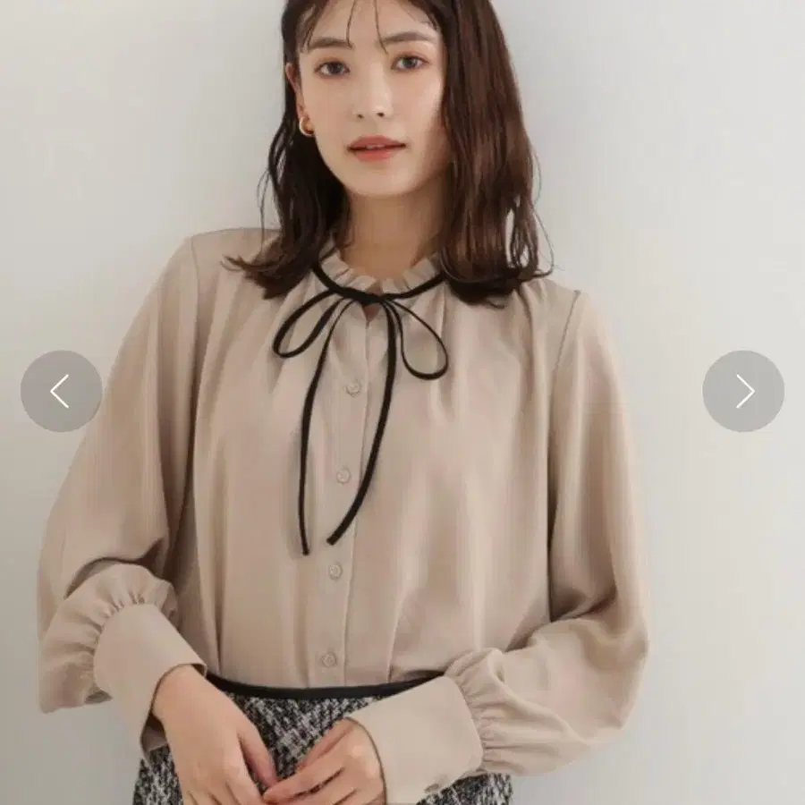 NATURAL BEAUTY BASIC 바이컬러 리본 블라우스