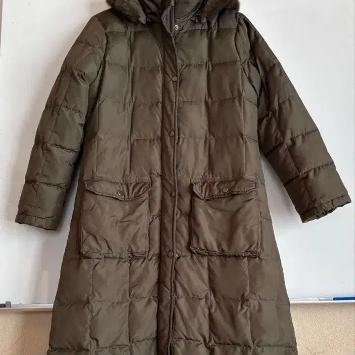 후드 부착 올리브 그린 롱 코트