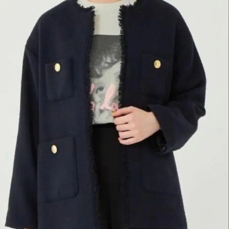 새상품급 2022AW 그린라벨 트위드 노카라 자켓 네이비 38