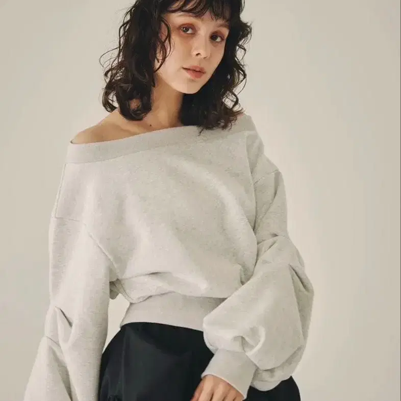 적당한 내추럴함을 연출하는 오프숄더 디자인과 풍성하게 들어간 턱이 만들어내는 볼륨 슬리브가 매력적인 트레이닝복.