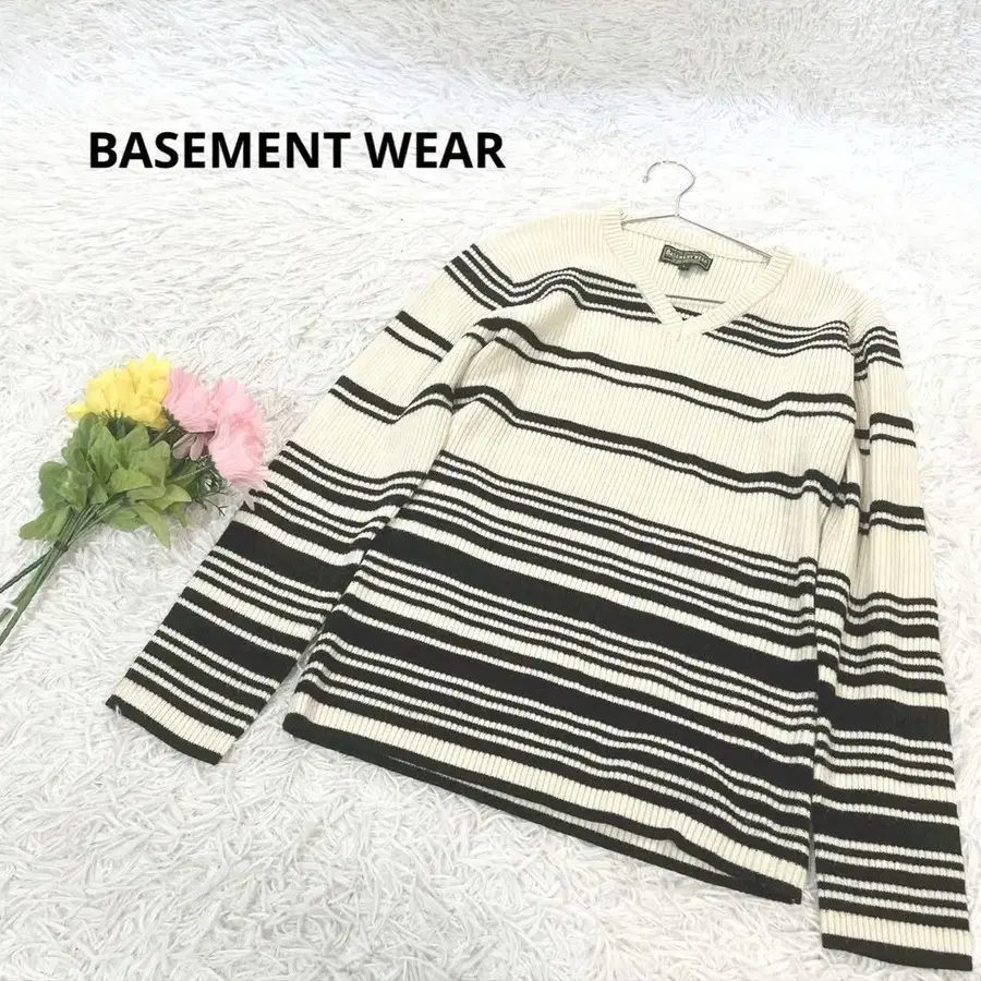 BASEMENT WEAR [ L ] 상의 니트 V넥 리브 멀티 보더