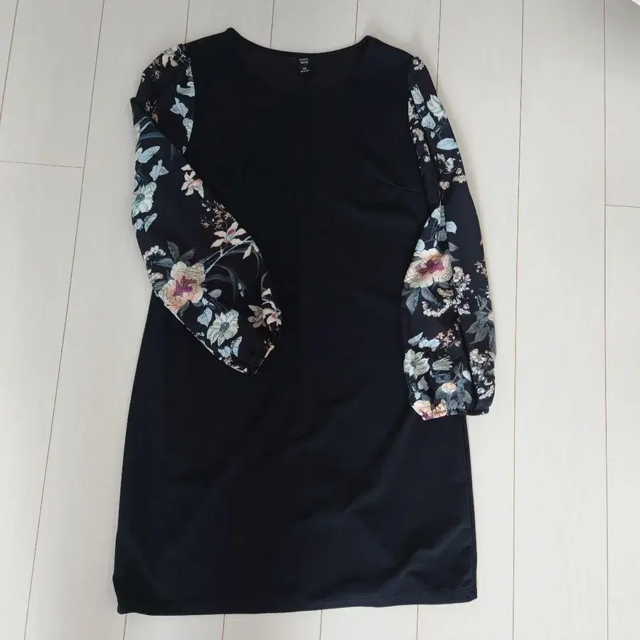 블랙과 꽃무늬의 긴팔 무릎 기장 원피스