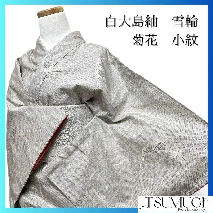 화이트 오시마 명주, 눈꽃 모양에 국화가 짜인 코몬입니다.