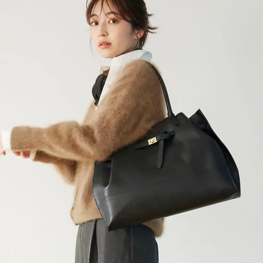TOPKAPI 슈링크 가죽 벨트 디자인 A4 토트백 블랙