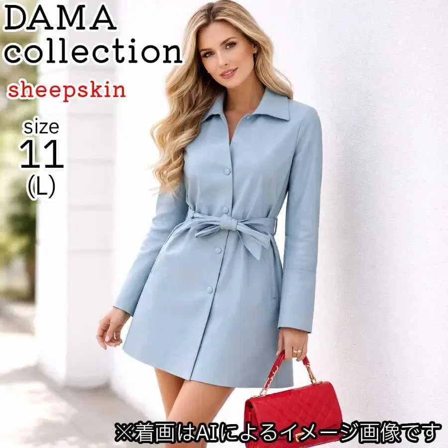 [ 새상품급 ] 다마 컬렉션 가죽 코트 양가죽 벨트 포함 라이트 블루 L