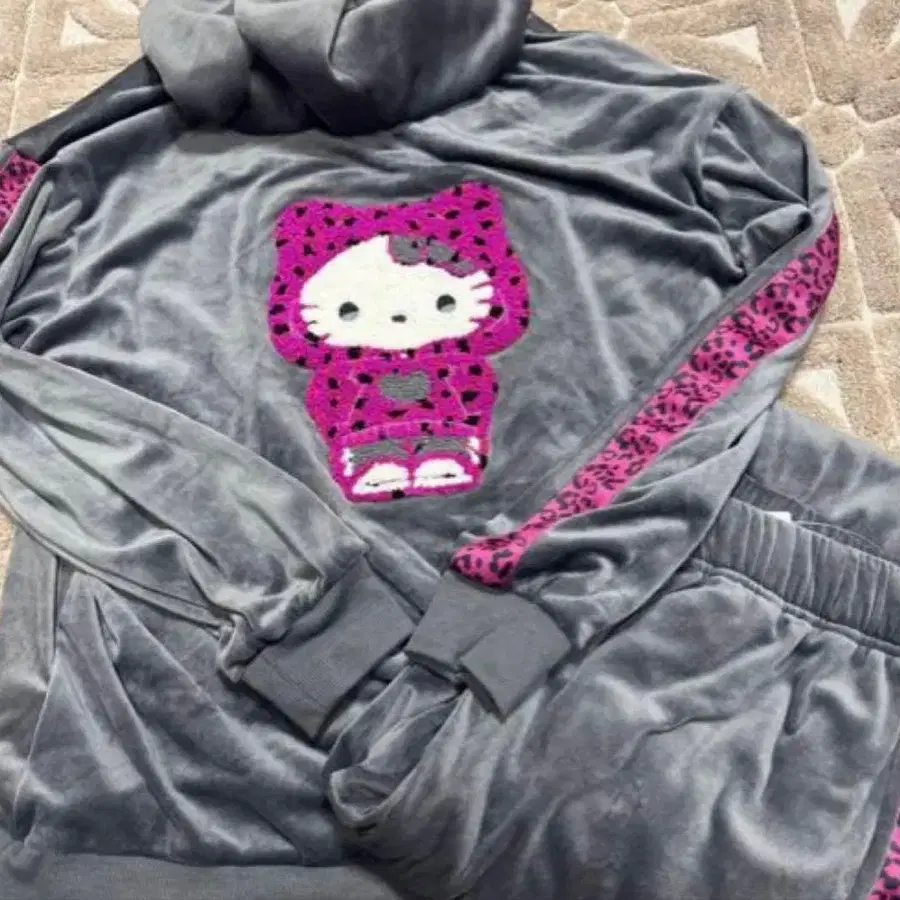 새상품 헬로키티 플리스 룸웨어 셋업 레오파드 벨로아 갸루