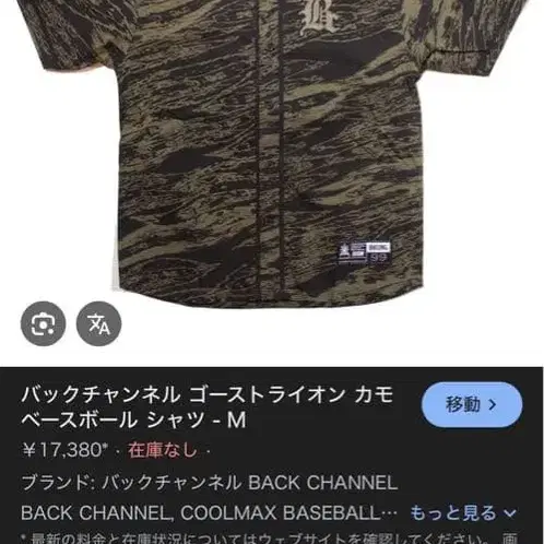 Back Channel 카모플라쥬 베이스볼 셔츠 L 사이즈
