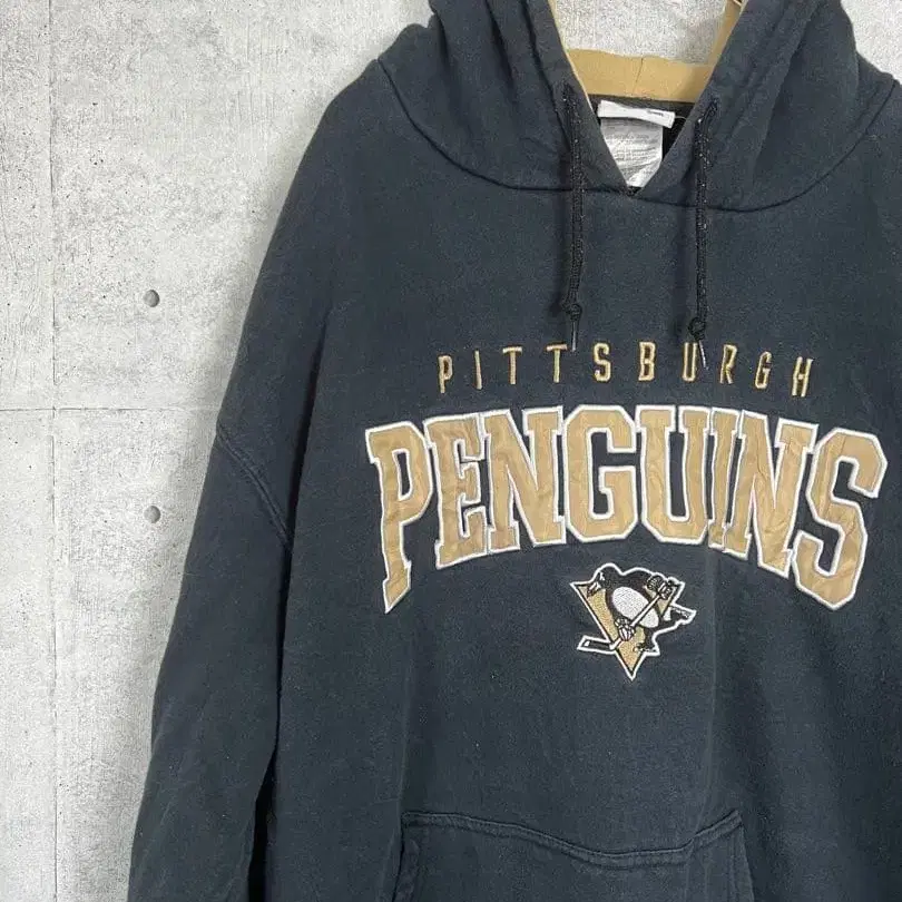 해외 구제 의류 NHL PENGUINS 후드티 블랙 자수 로고