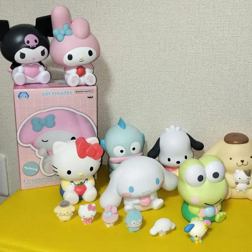 가격 인하 ❌ 낱개 판매 ❌ 즉시 구매 ⭕ 15개 세트입니다. [ 산리오 캐릭터즈 ] ● SOFVIMATES 소프트 비닐 메이츠 ○ [ 상자 ver. ] 마이멜로디 릴랙스 ver. 미개봉입니다. ○ 케로케로케로피 ○ 마이멜로디 ○ 헬로키티 ○ 포차코 ○ 폼폼푸딩 ○ 한교동 ○ 쿠로미 ○ 시나모롤 ● 반다이 가샤폰 ○ 기다림 산리오 캐릭터즈 4 [ 우사하나 ] ○ 복슬복슬 플로키 인형 전 5종 ⚠ 전체적으로 데미지 있음 14점은 집에서 장식했던 것으로, 외부 상자 없음입니다. 포장에 주의하겠습니다. 그 외 눈에 띄는 데미지는 보이지 않지만, 개봉 완료, 인형뽑기 경품 등이기 때문에 약간의 흠집이나 스크래치 등이 있을 수 있습니다. 이해하신 후 구매 부탁드립니다. 소프트 비닐 피규어 프라이스 피규어 반프레스토