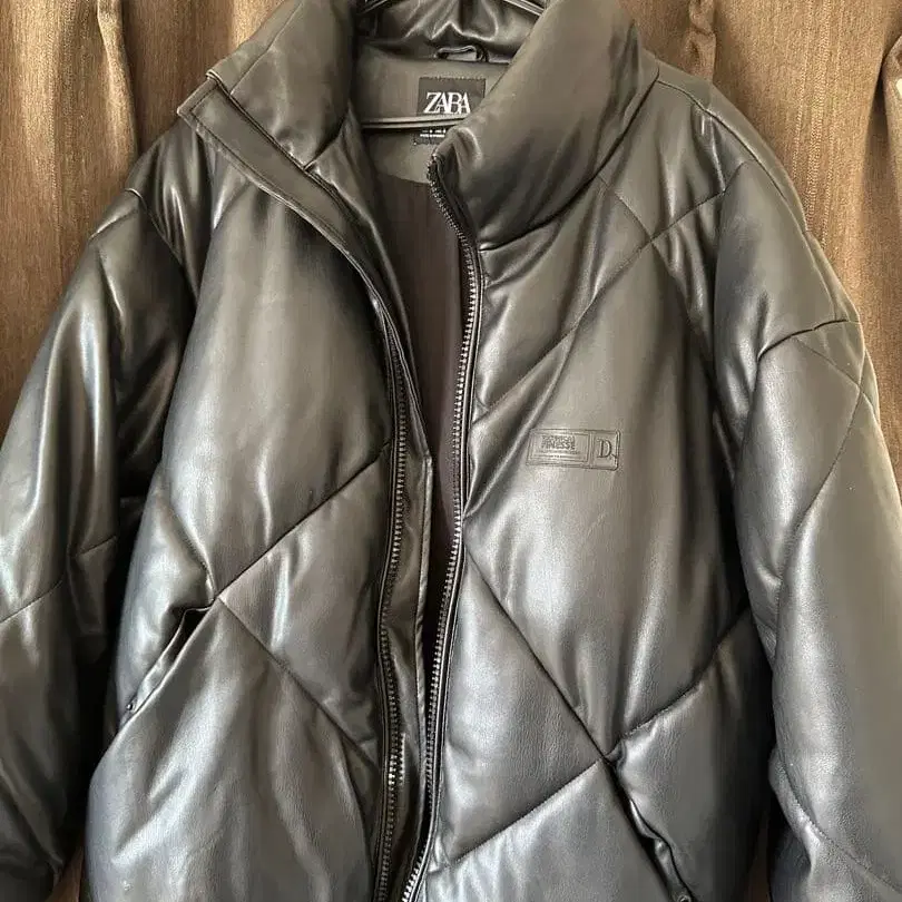 가죽 퀼팅 다운 자켓 블랙