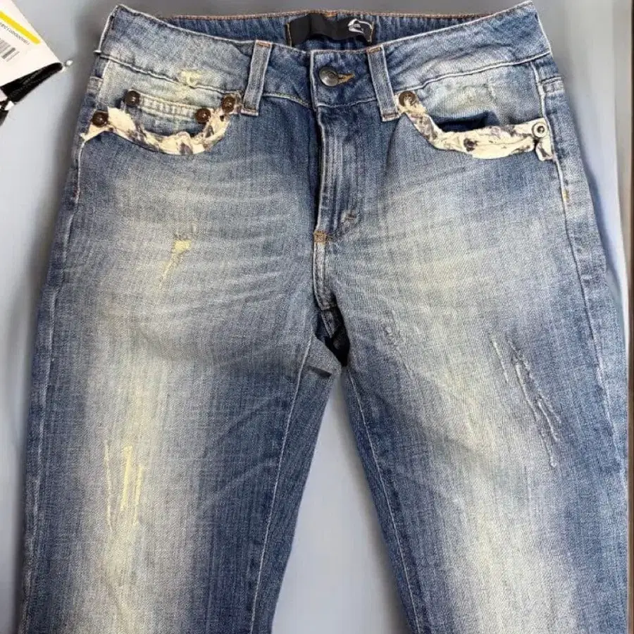 택 포함 미사용 저스트 카발리 라이트 블루 데미지 데님 팬츠