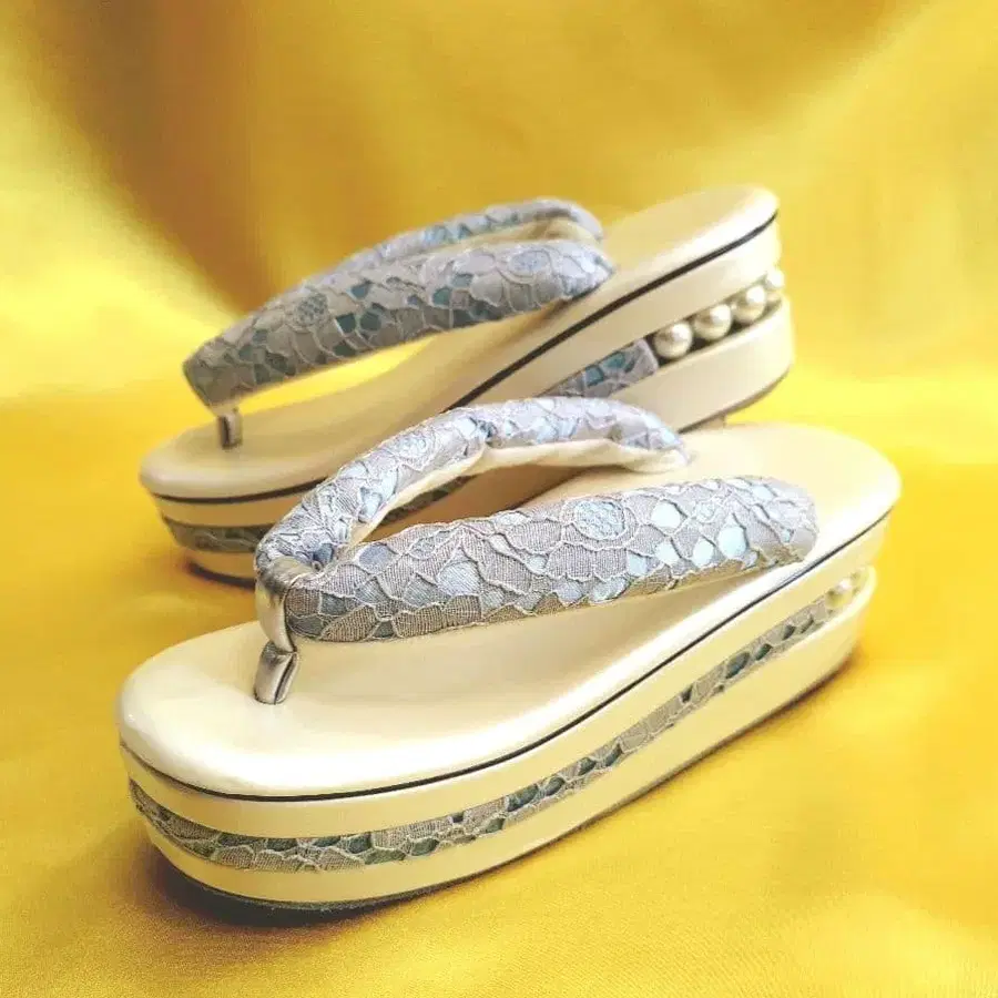 파란색 레이스 웨지솔 조리 통굽 펄 성인식