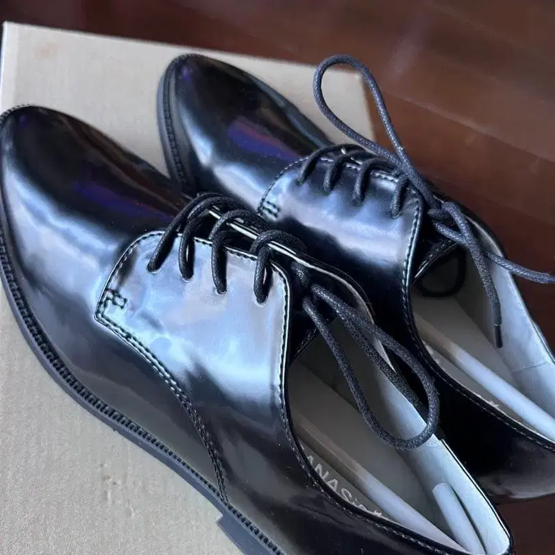 블랙 광택 레이스업 슈즈