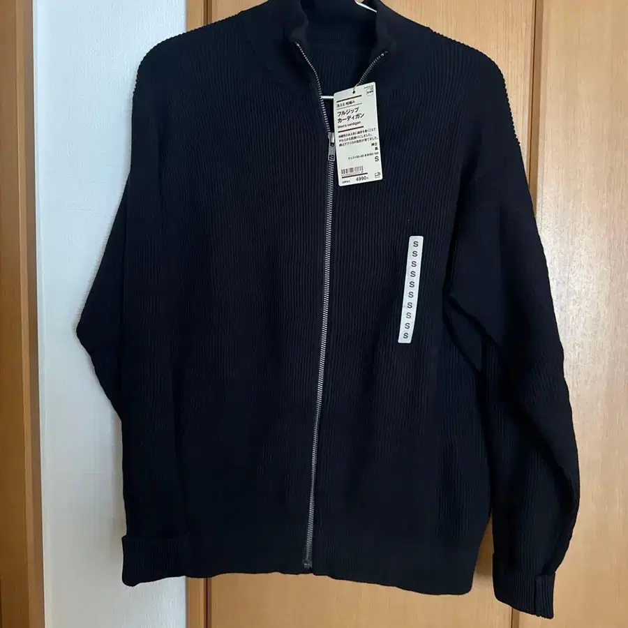 무인양품 블랙 풀 집업 가디건 남성용