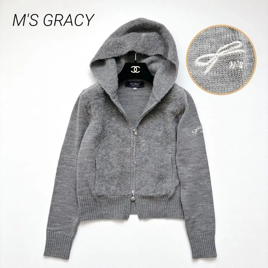 새상품급 엠즈 그레이시 퍼 니트 더블 지퍼 후드티 그레이 38