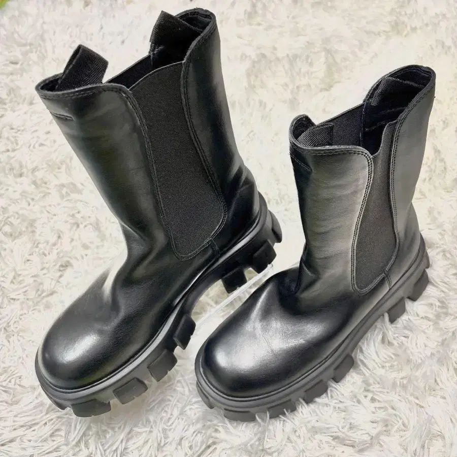 [ Hannah ] 사이드 고어 부츠 블랙 통굽 가죽 24.5cm