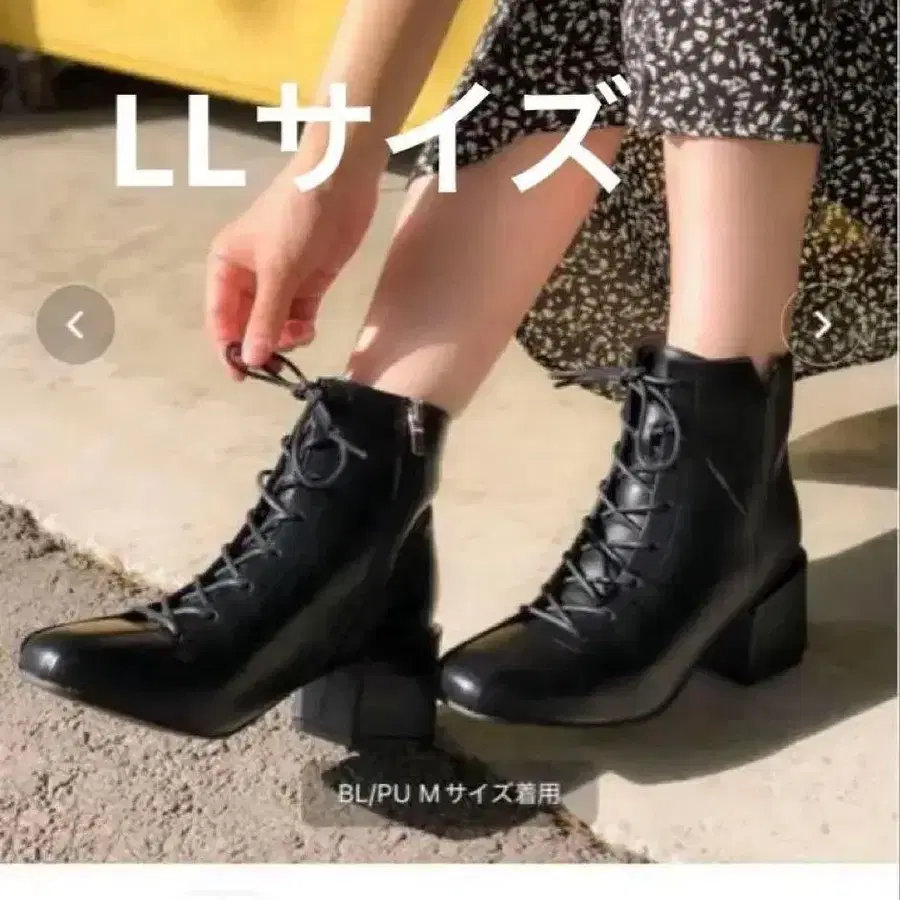 슈가 슈가 블랙 스퀘어토 레이스업 부츠 LL 사이즈