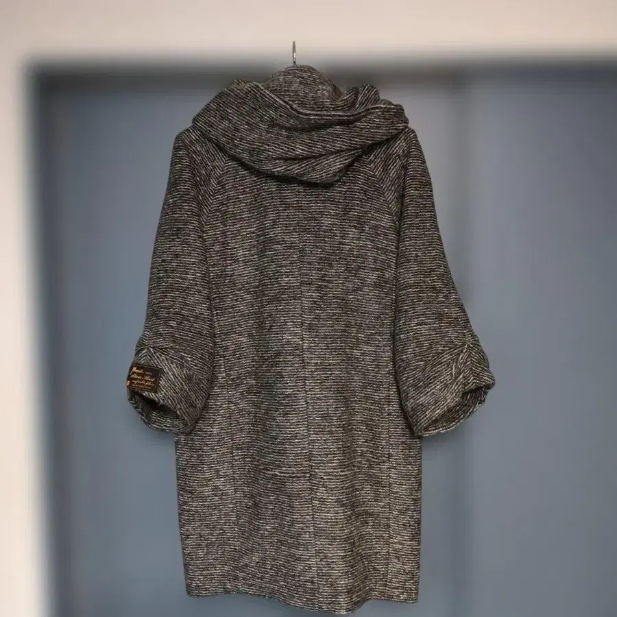 Mapei 후드 부착 롱 코트 그레이 계열 스트라이프