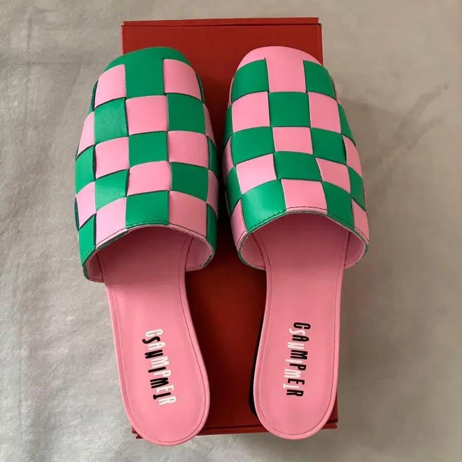 CAMPER TWINS 플랫슈즈 핑크 그린 슬립온