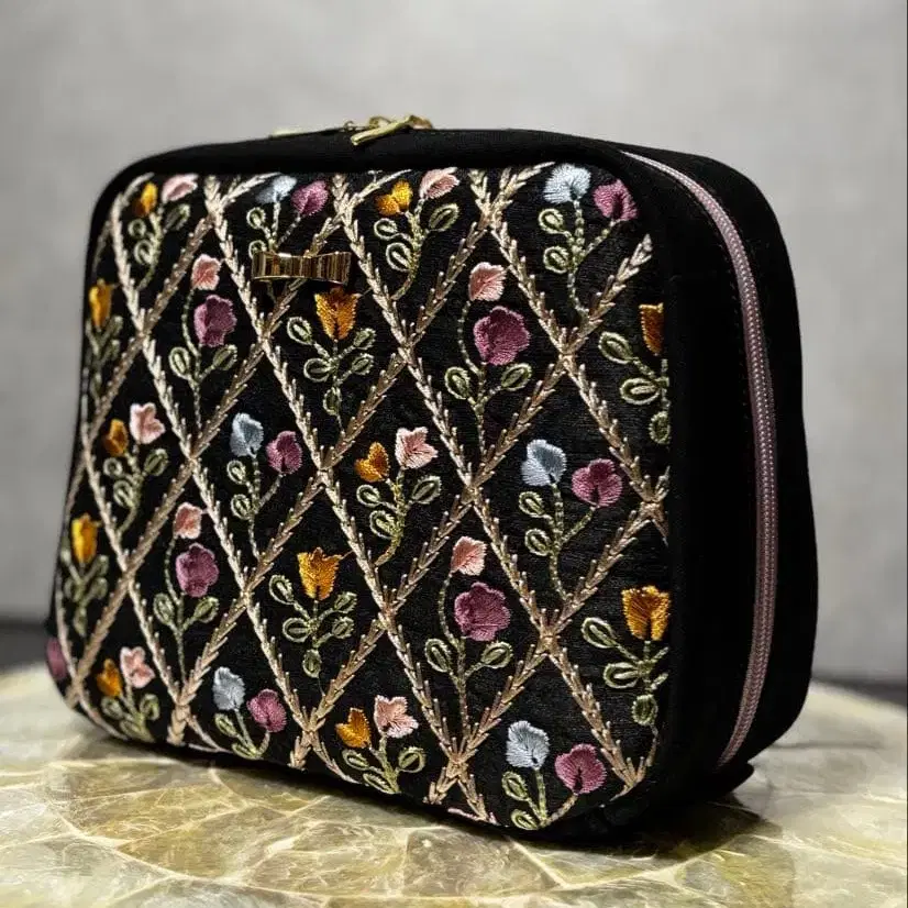 귀여운 꽃 무늬 인도 자수 원단으로 메이크업 파우치를 만들었습니다. 리본 참도 포인트 ♡ 지퍼는 양쪽으로 열리며, 가벼운 마감을 위해 코일 지퍼를 사용했습니다. 이 메이크업 파우치는 포켓이 6곳 있습니다. 작은 포켓 4개 깊은 포켓 2개 정리하기 쉽고, 물건을 잃어버릴 염려가 없습니다. 작은 포켓에는 단색 아이섀도나 밤, 약 등 작은 물건들을 보관하세요. 활짝 열려 안이 잘 보여 물건을 넣고 빼기 편리합니다 ◎ 평소 사용부터, 여행 시 휴대하기 등 다양하게 사용하실 수 있습니다. 선물로도 어떠신가요(o^^o) 저는 집에서 화장하는 화장대에 두고 사용합니다. 여행 갈 때는 그대로 가지고 나갑니다(o^^o) ● 사이즈 세로 약 15cm / 가로 약 19cm / 위쪽 바닥 약 6cm / 아래쪽 바닥 약 8cm ● 원단 겉감 인도 자수 원단, 옥스 원단에 접착심 사용 안감 면 폴리 *질문 등 있으시면 편하게 댓글 남겨주세요(^^) 묶음 신청하시는 분은 할인율이 가장 높은 것으로 신청하셔도 괜찮습니다. 구매 절차 후에는 할인이 불가능하므로, 구매 시 잘 부탁드립니다. ✳︎ 이 상품은 momo의 핸드메이드 작품입니다. 하나하나 정성껏 만들도록 노력하고 있습니다. 핸드메이드 제품에 이해해주시면 감사하겠습니다. 또한, 원단 가격 등에 따라 같은 모양이라도 금액에 차이가 있을 수 있습니다. 양해 부탁드립니다(*´꒳`*)