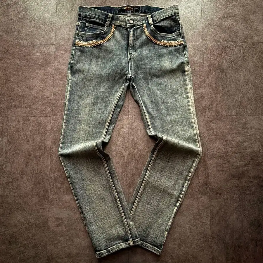 초레어 CLOUD72 스트레이트 데님 스터드 자수 아메카지 y2k 32