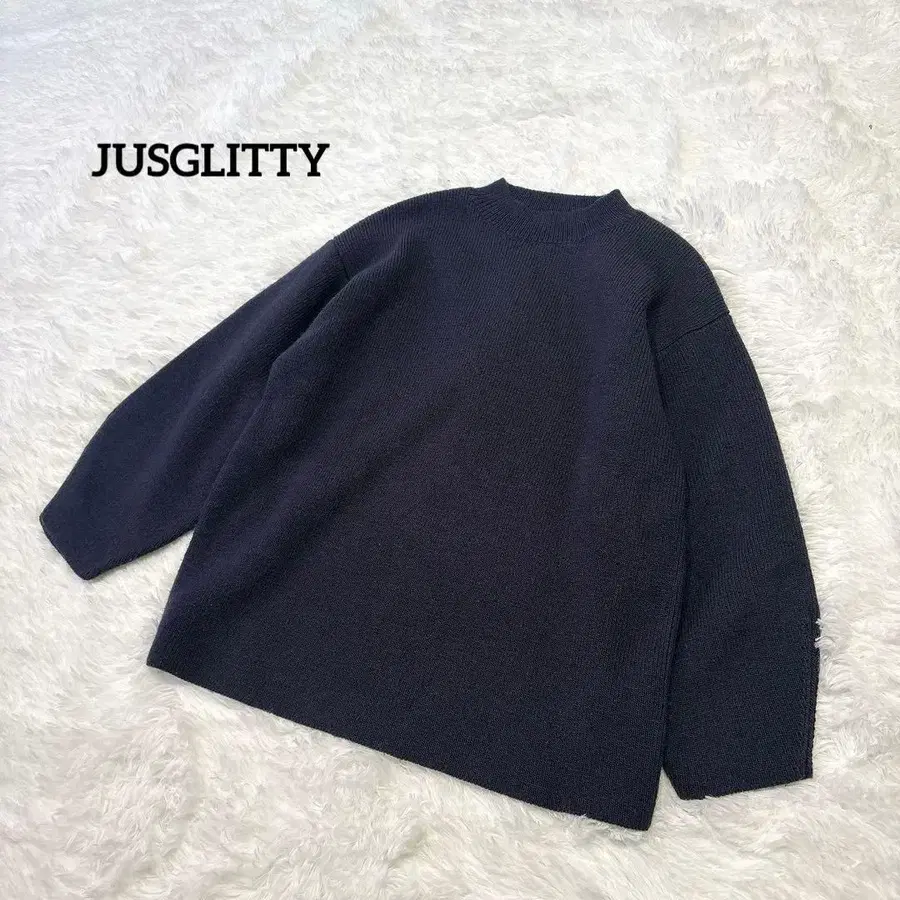 저스길리티 니트 네이비 M 상당 하이넥 깔끔한 울 혼방