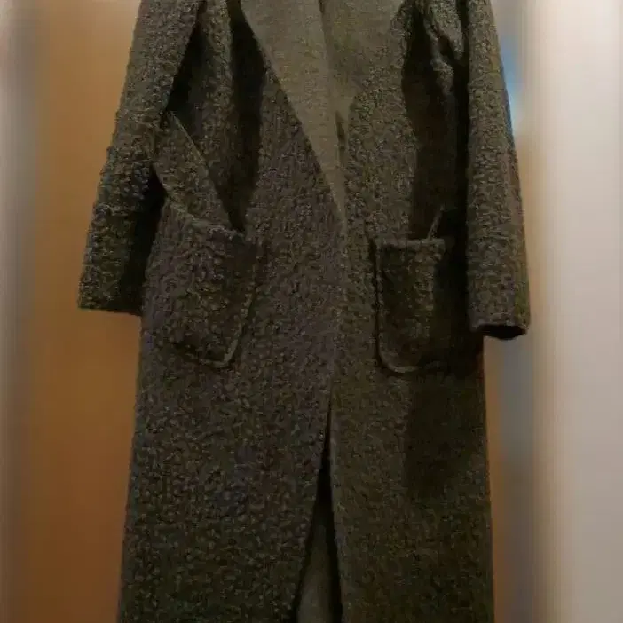 이탈리아제 모드 플뢰르 올리브색 후드 부착 보아 롱 코트