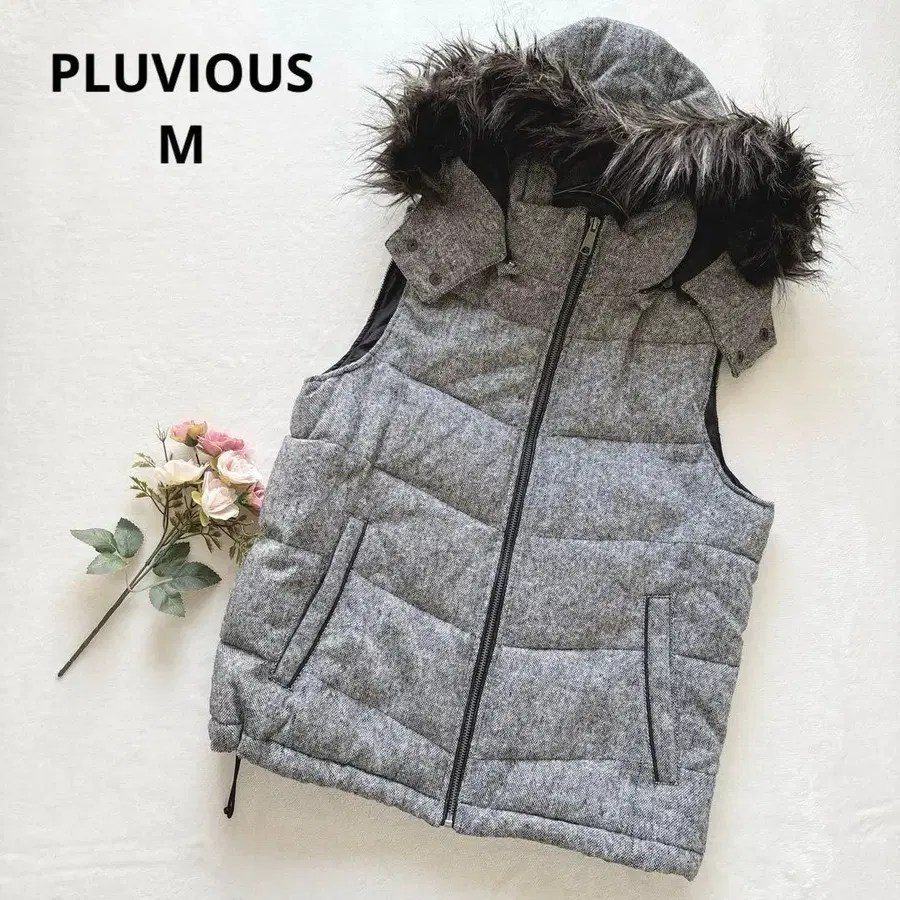풀비아스 후드 퍼 포함 충전솜 다운 베스트 캐주얼 따뜻함 M 그레이