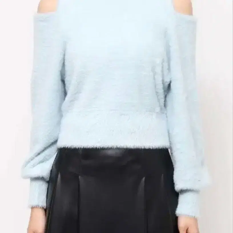 MERCURYDUO 오픈 숄더 미니 샤기 니트