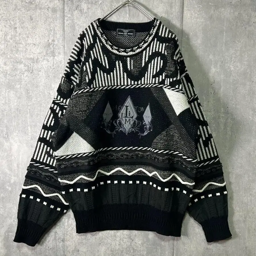 극강 빈티지 자수 3D 니트 블랙 스웨터