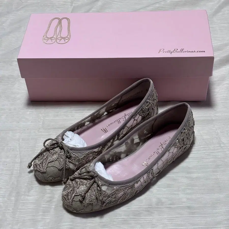 Pretty Ballerinas 펌프스 라운드토 베이지 레이스 36 리본 신발 밑창 디자인 발표회 파티 코스프레 이벤트 플랫 밑창
