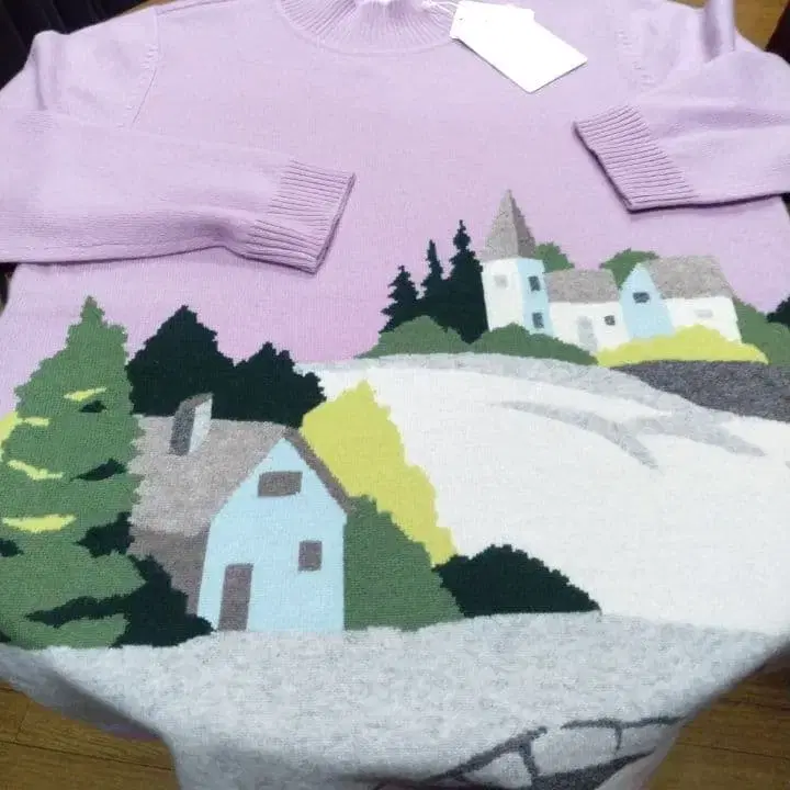 ALT MODER 캐시미어 100% 스웨터 풍경 무늬 등나무색 인타샤
