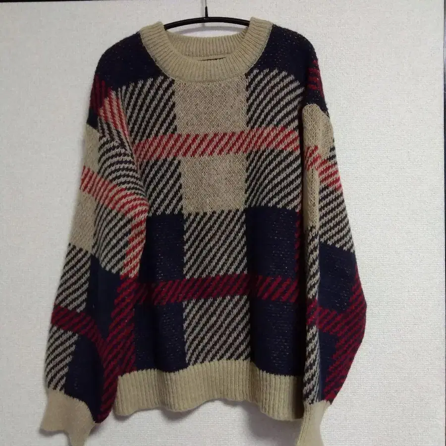 택 포함 미사용 새상품 체크 무늬 니트 스웨터