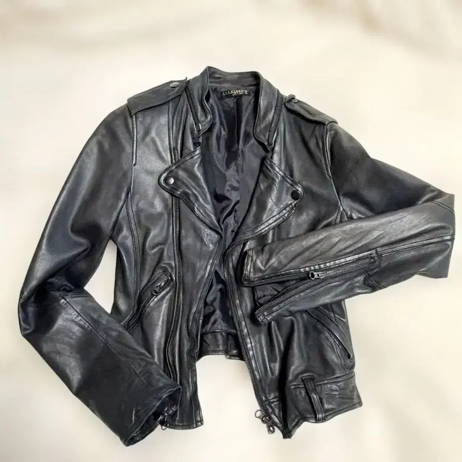 THE FIRST 램 가죽 블랙 라이더 자켓