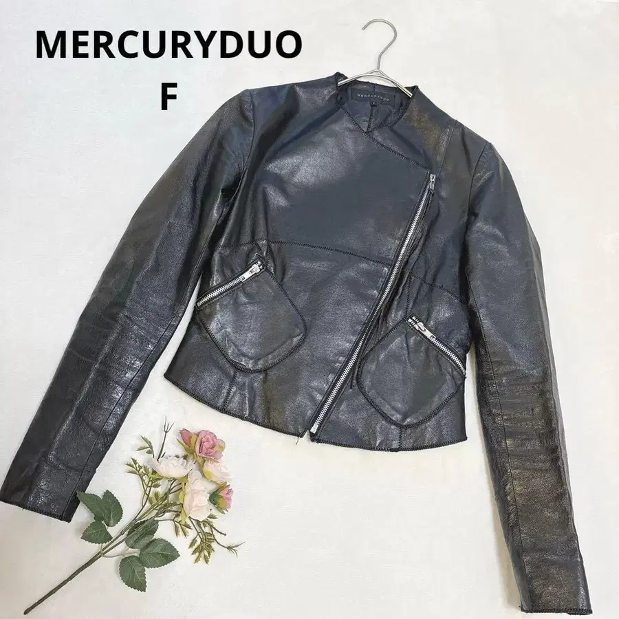 머큐리듀오 블랙 노카라 라이더 자켓 천연 가죽 F