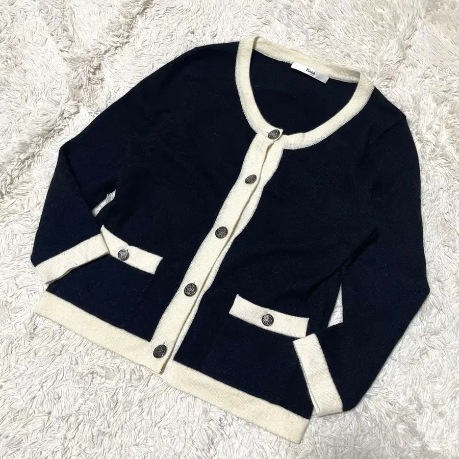 르네 캐시미어 100% 가디건 바이컬러 크루넥 36