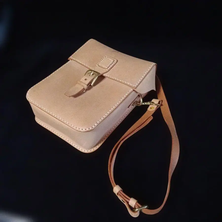 가죽 플랩 숄더백 베이지, 핸드메이드
