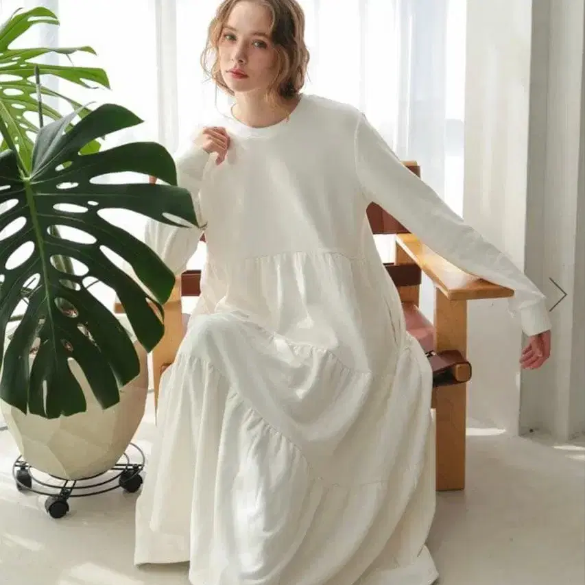 DONOBAN 속기모 티어드 원피스 아이보리 롱 기장
