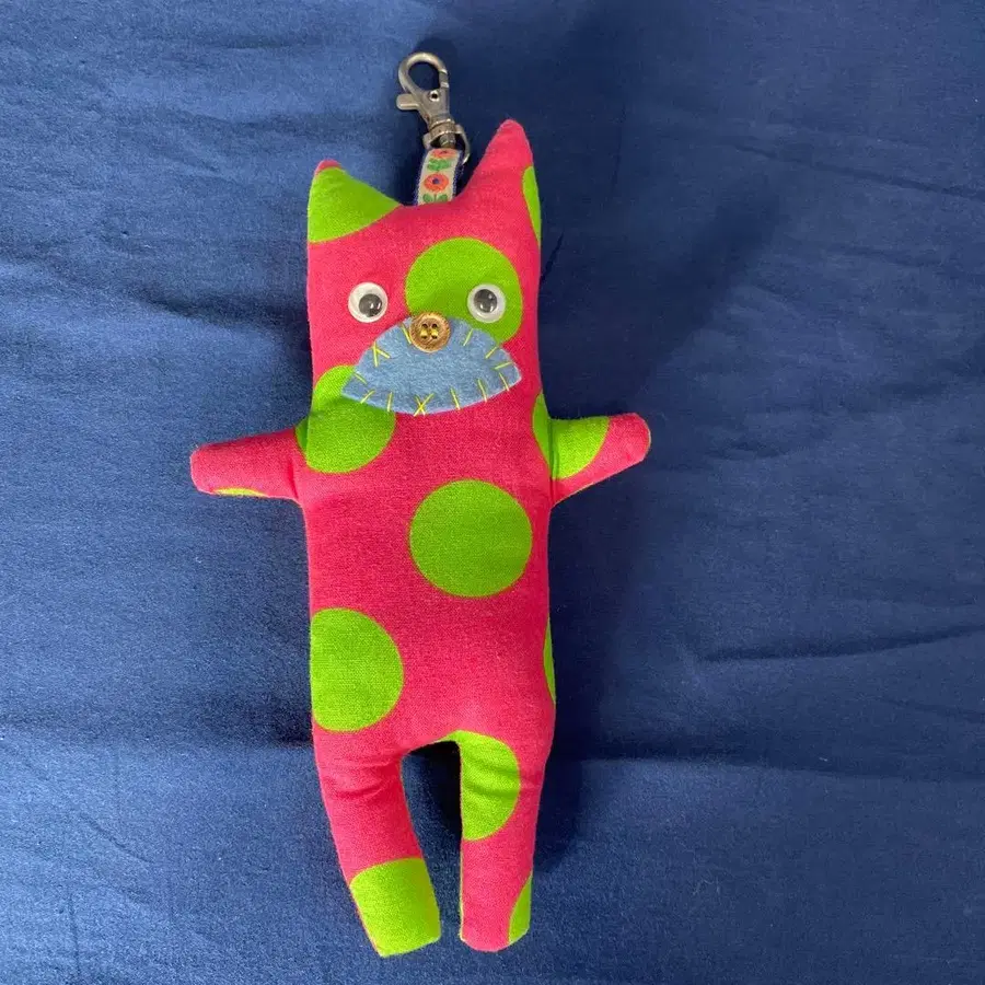 컬러풀하고 위트 있는 디자인이 눈길을 끄는 핸드메이드 봉제 인형 키링입니다.