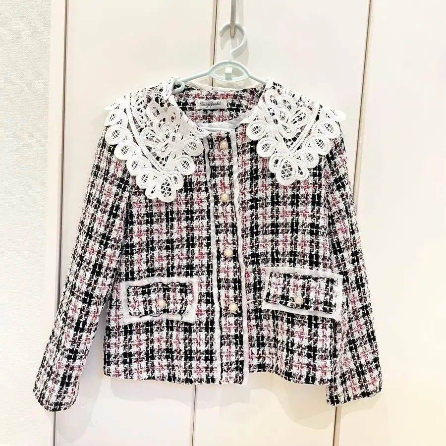 Gaojifushi 트위드 자켓 레이스 옷깃