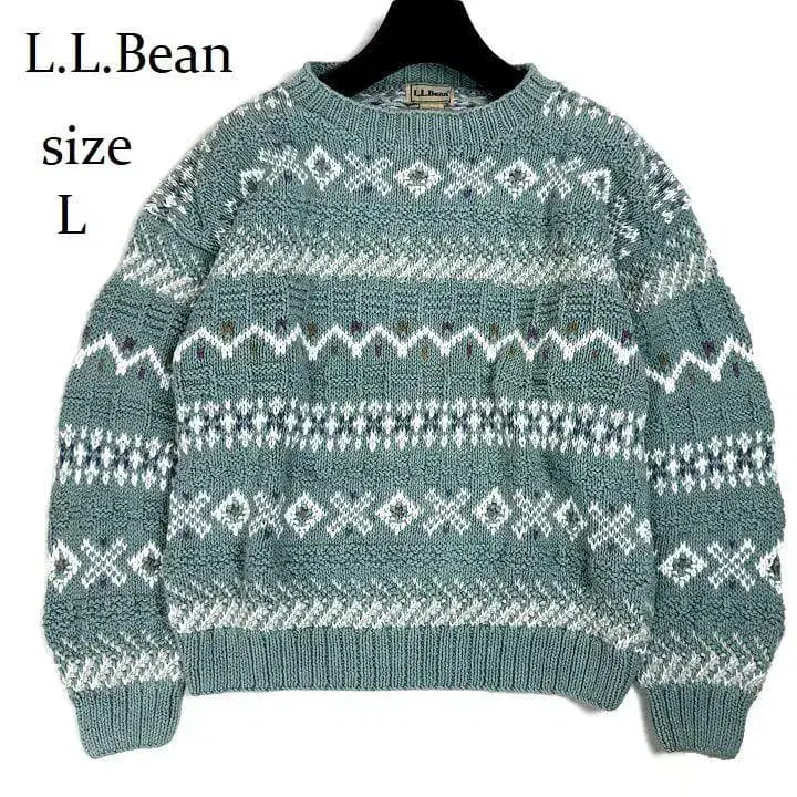 L.L.Bean 올 패턴 노르딕 코튼 니트 L 빅 루즈 빈티지