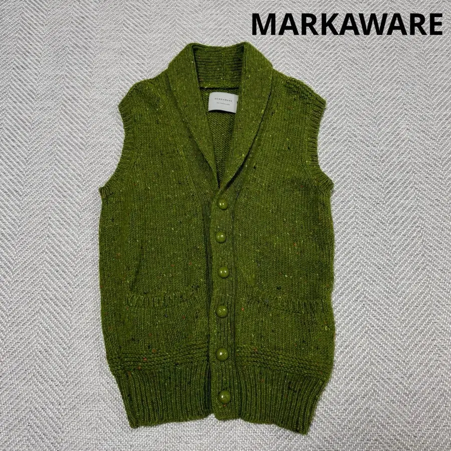 새상품급 마카웨어 숄카라 베스트 슬리브리스 가디건 그린 2