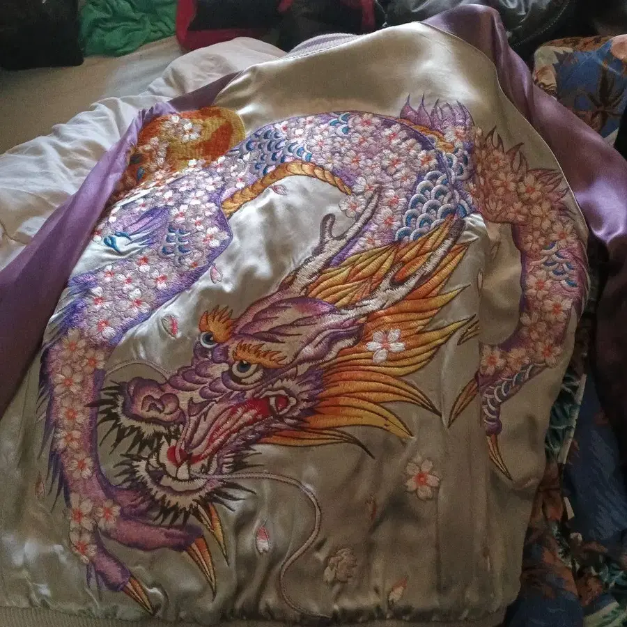 드래곤 자수 스카잔 실버 퍼플 육무인