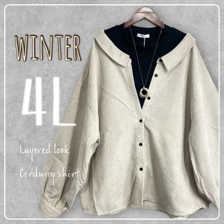새상품 4L 빅 사이즈 이너 레이어드 스타일 코듀로이 셔츠 오프