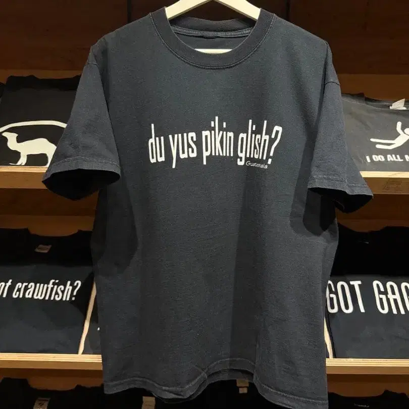 당신은 영어를 할 수 있습니까? 라는 비꼬는 듯한 메시지 티셔츠입니다.