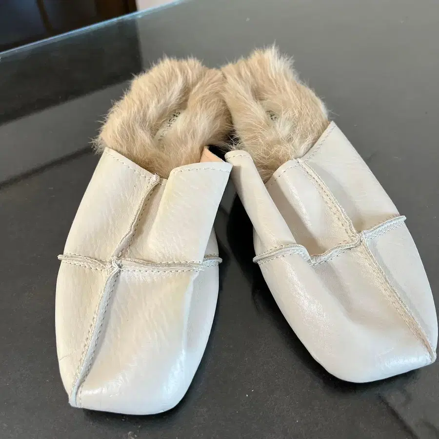 페이크퍼 뮬 샌들