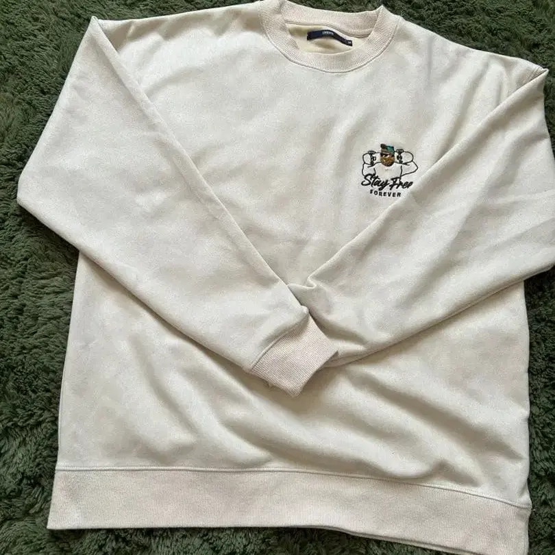 크림색 자수 로고 크루넥 트레이닝복