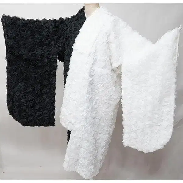 이척소매 기모노 단품 튤 로즈 반신 재단 숏 기장 블랙 x 화이트